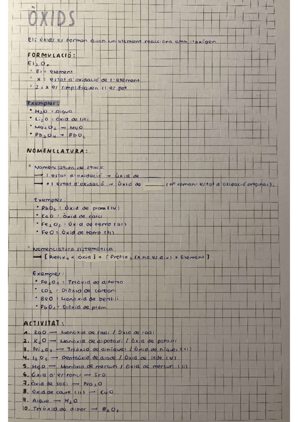 Teoria dels òxids i exemples + activitats fetes, tot i que es poden aprofitar per practicar la formulació i la nomenclatura de stock i sistemàtica. Los apuntes son en catalán, aunque creo se pueden entender perfectamente si hablas castellano.