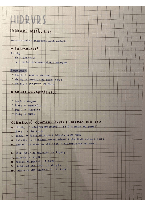 Teoria dels hidrurs i exemples + correcció d'una prova que pot servir com a activitats per practicar. Los apuntes son en catalán, aunque creo se pueden entender perfectamente si hablas castellano.