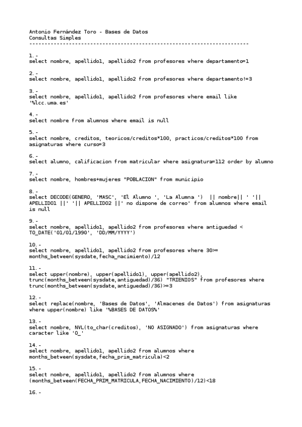 He publicado nuevos ejercicios de 2º Bases de Datos: SQL1 - consultas simples.txt