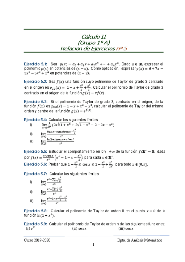 He publicado nuevos ejercicios de 1º Cálculo II: rela5-CalculoII-curso19-20.pdf