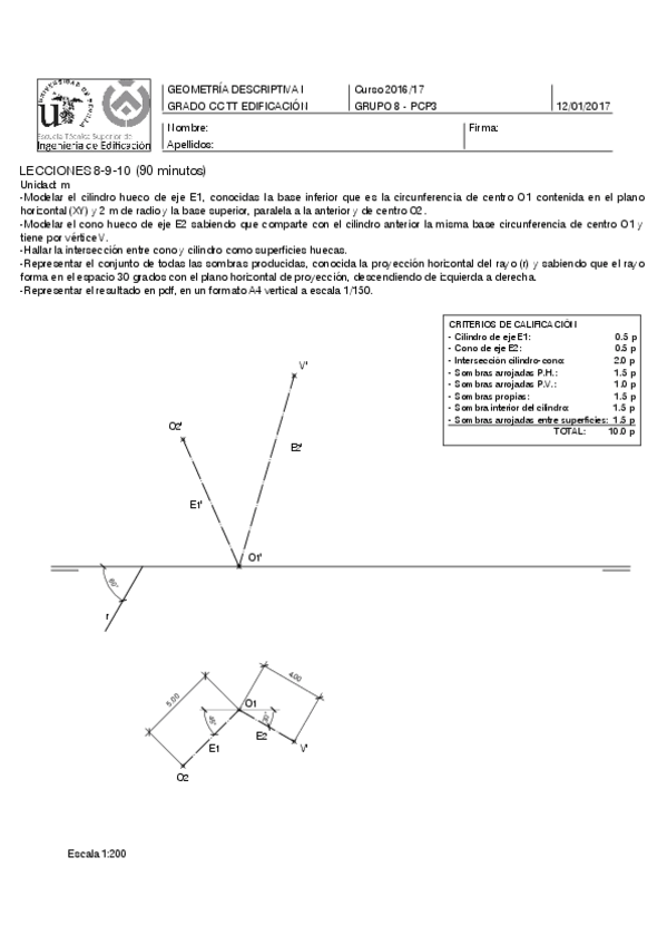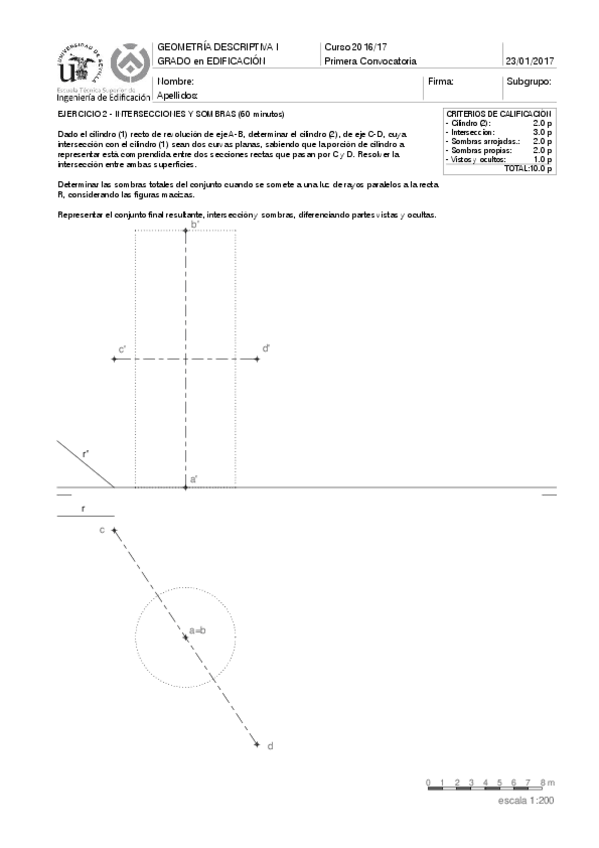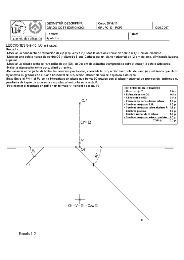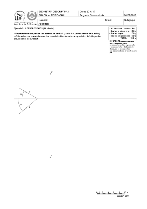 He publicado nuevos examenes de 1º Geometría Descriptiva I: Exámenes intersecciones y sombras