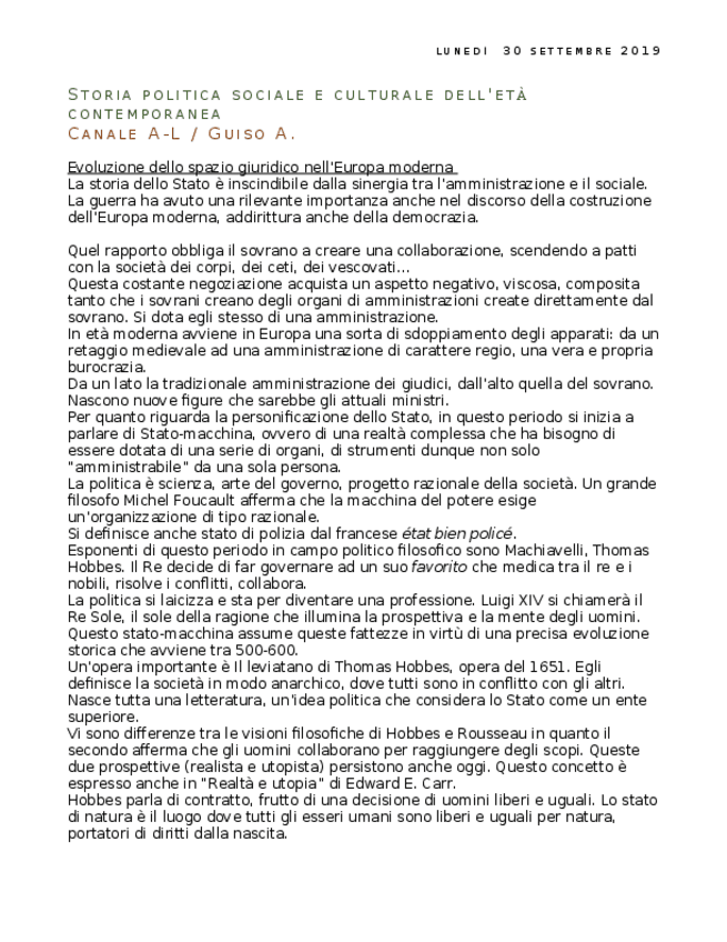 He publicado nuevos apuntes de 1º STORIA POLITICA SOCIALE E CULTURALE DELL'ETA' CONTEMPORANEA: 1.docx