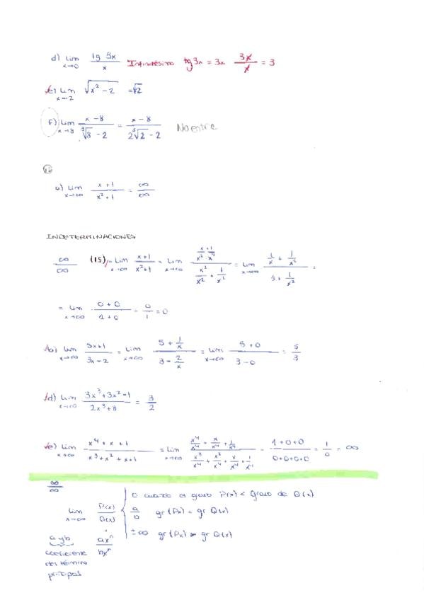 Límites de funciones cuando x tiende a un número infinito
