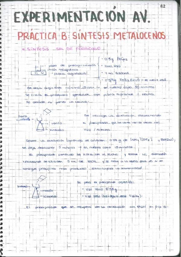 Cuaderno de laboratorio. Práctica B. Síntesis de metalocenos