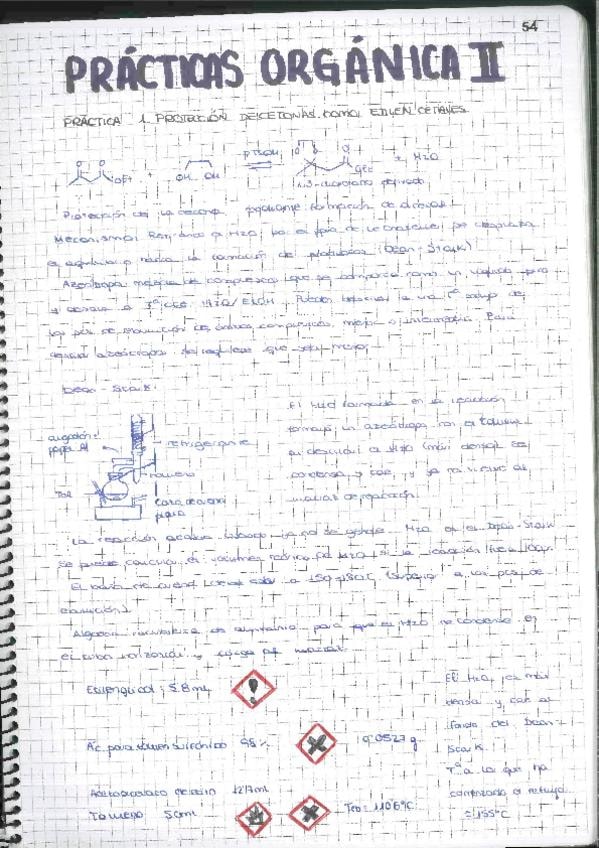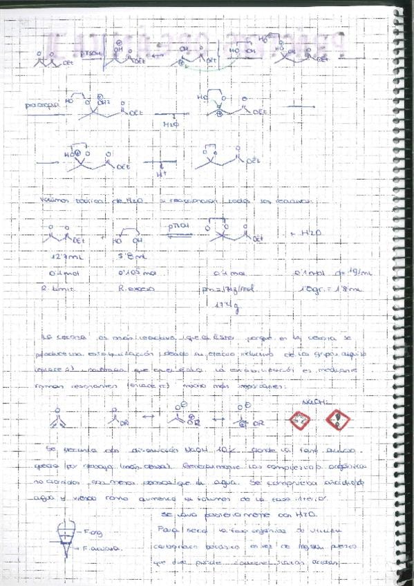 Cuaderno de laboratorio. Práctica 1. Protección de cetonas como etilencetales SINTESIS DE UN CLORURO DE ÁCIDO Y REACCIÓN DE ESTE CON NUCLEÓFILOS