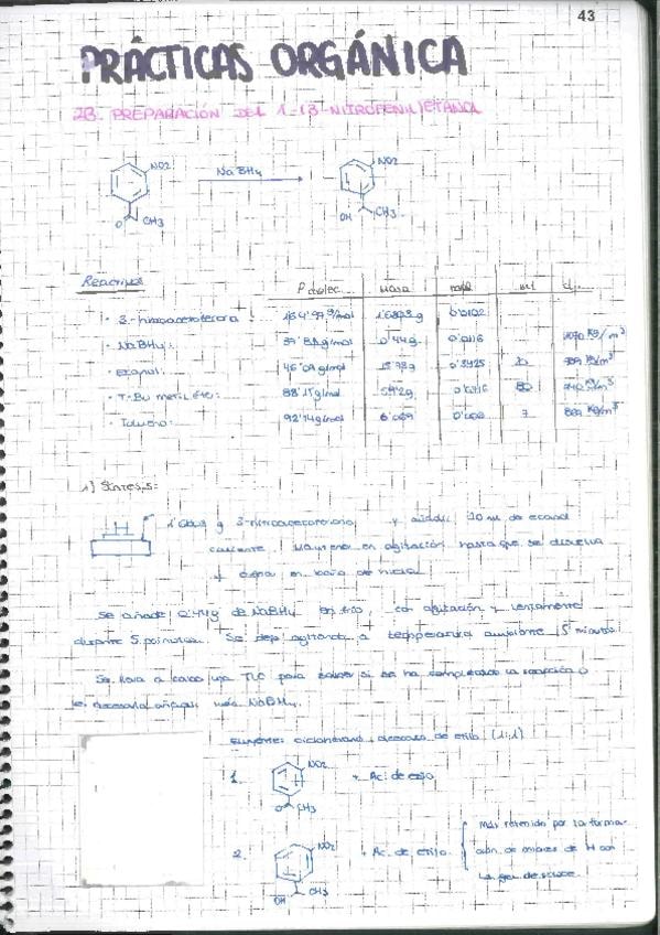 Cuaderno de laboratorio. 2B, preparación del 1-3-nitrofeniletanol