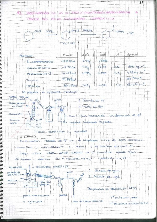 Cuaderno de laboratorio. 1B, preparación de la N-metilcicloheanocarboxamida a partir del ácido ciclohexano carboxílico