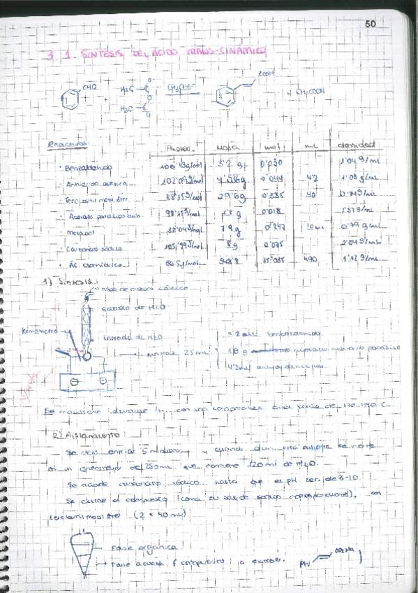 Cuaderno de laboratorio. 3.1, síntesis del ácido trans-cinámico. CONDENSACIÓN DE PERKIN