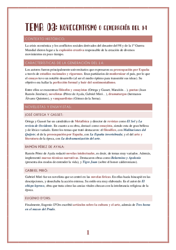 Redacción del tema 3 (Novecentismo o Generación del 14) para el bloque 5 de EVAU/PAU de Literatura. Espero que te sirva de ayuda!! :)