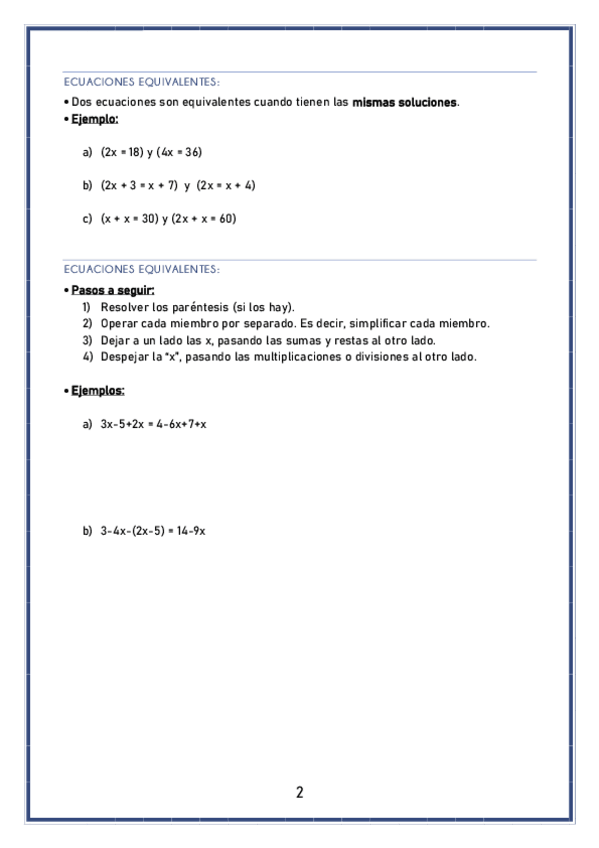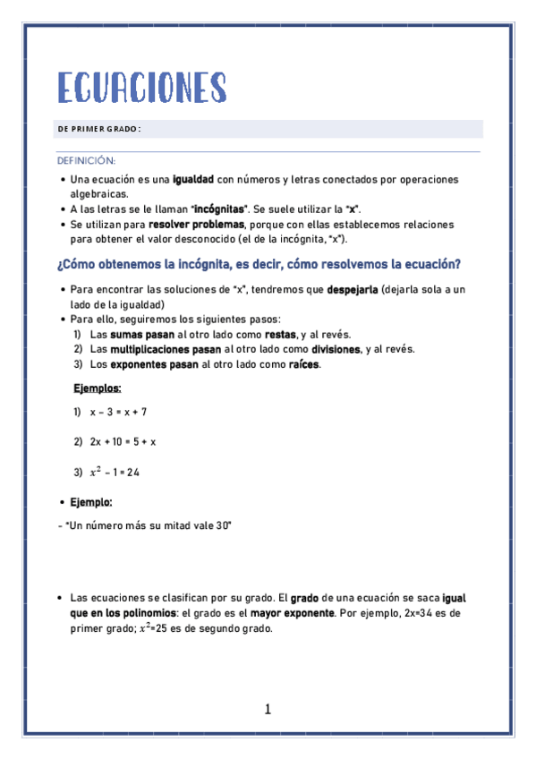Material didáctico completo sobre las ecuaciones de 1º y 2º grado, con ejemplos y ejercicios, de nivel de 2º de la ESO. Diseñado para poderlo trabajar interactivamente, con aclaraciones y truquitos ;)