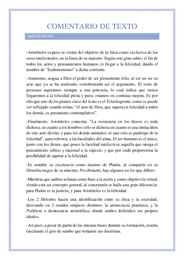Comentario de texto sobre un fragmento de "Ética a Nicómaco" de Aristóteles, en la lista de posibles textos de la PAU 2025.