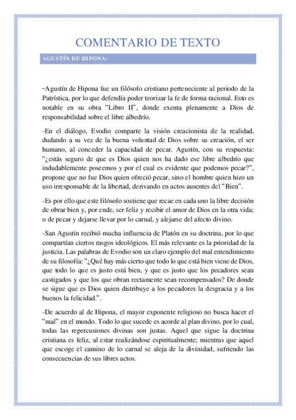 Comentario de texto sobre un fragmento de "Libro II" de San Agustín de Hipona, en la lista de posibles textos de la PAU 2025.