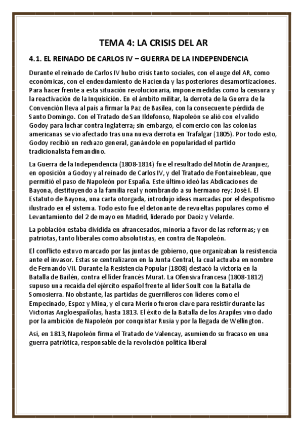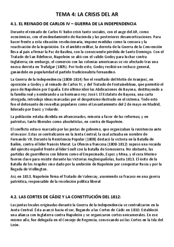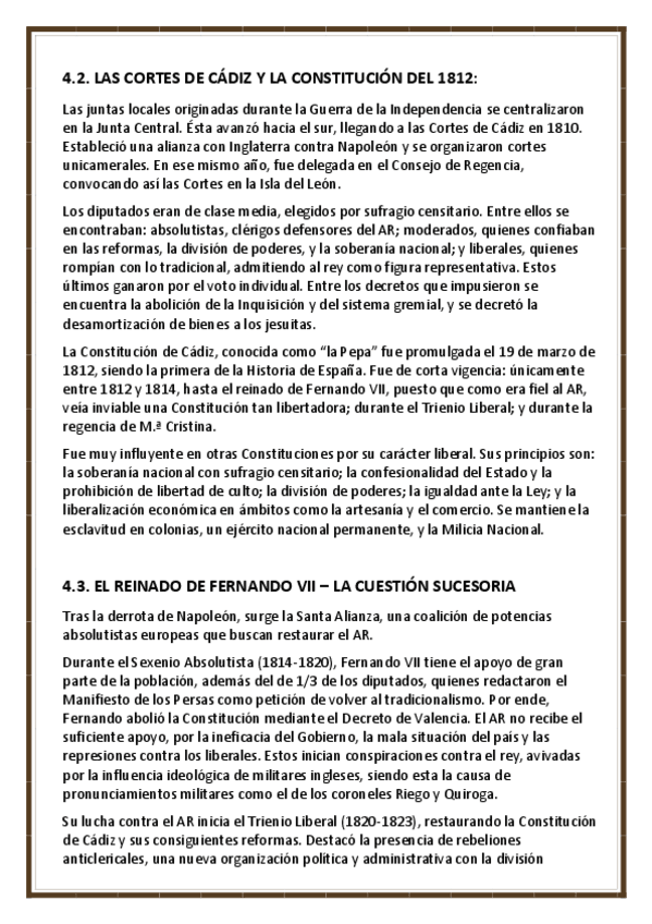 Apuntes completos, pero esquematizados del cuarto tema de Historia de España