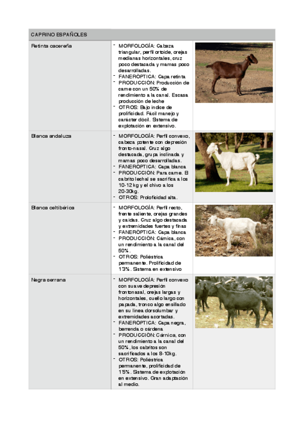RAZAS CAPRINO ESPAÑOLAS Y EXTRANJERAS