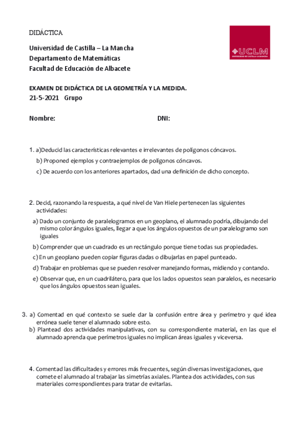 He publicado nuevos apuntes de 2º Didáctica de la Geometría y la Medida: Examen-ordinario-Didactica-de-la-Geometriay-la-Medida-2020-21.pdf