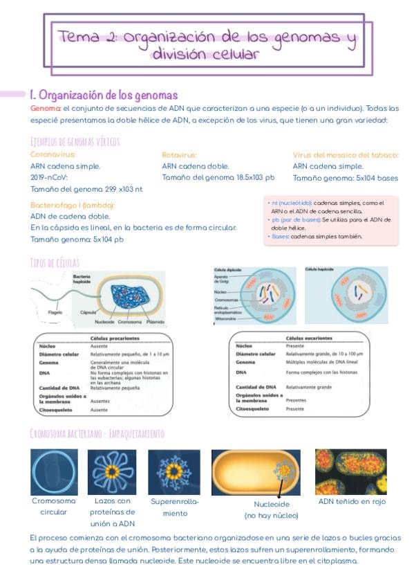 Apuntes del tema 2 de genética, “Organización de los genomas y división celular”.