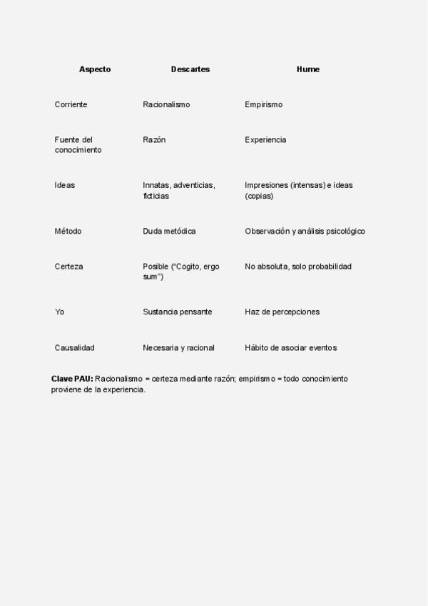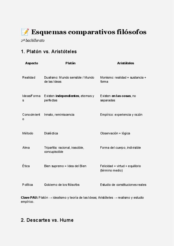 Esquemas comparativos filósofos (Platón vs. Aristóteles,Descartes vs. Hume,Racionalismo vs. Empirismo,Kant vs. Hume)