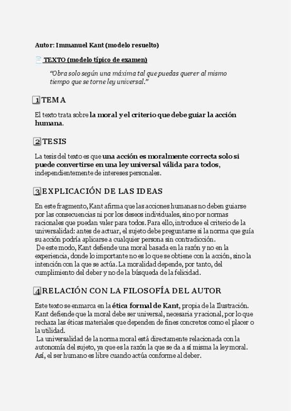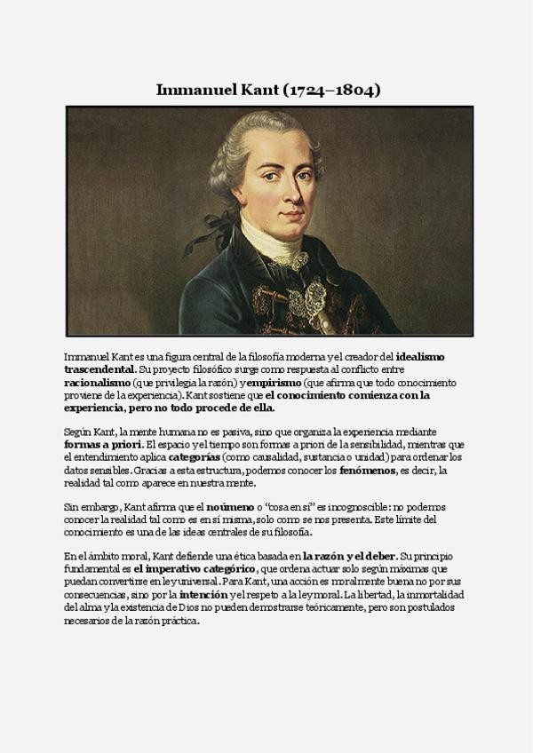 Resumen de Kant concreto, sencillo y clave para sacar un 10 en tu próximo examen