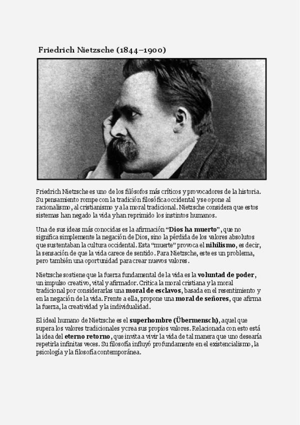 Resumen de Nietzsche concreto, sencillo y clave para sacar un 10