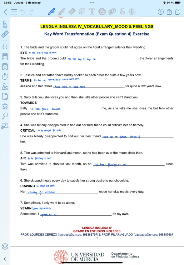 He publicado nuevos apuntes de 2º LENGUA INGLESA IV: Rephrasing mood and feelings and subordinates