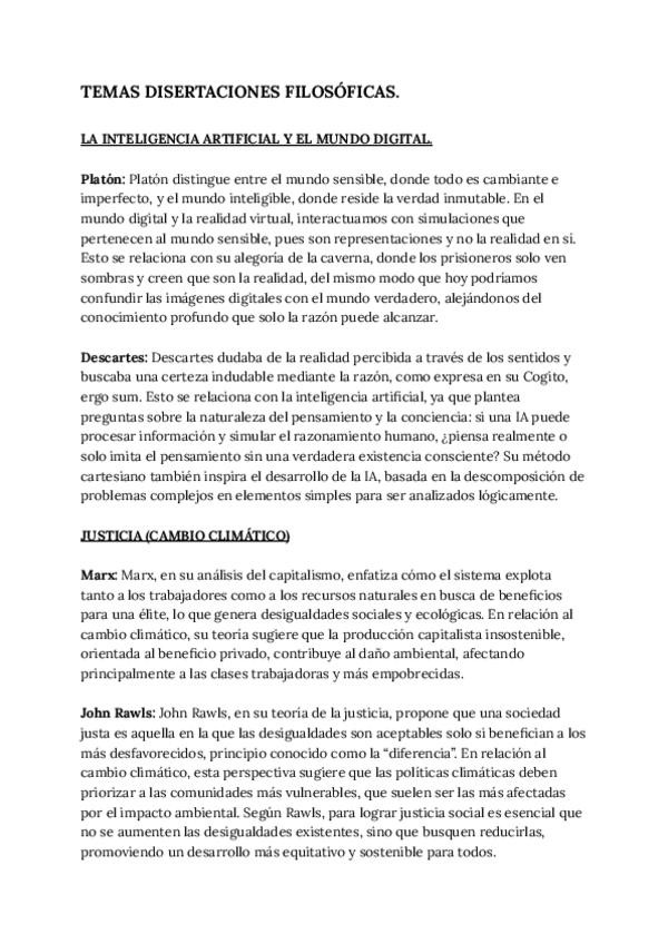 Autores para las DISERTACIONES DE FILOSOFÍA. Historia de la filosofia segundo de Bachillerato.