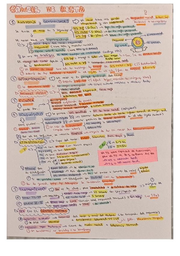 Resumen esquemático de los puntos más importantes del tema de tumores de recto y ano (cirugía)