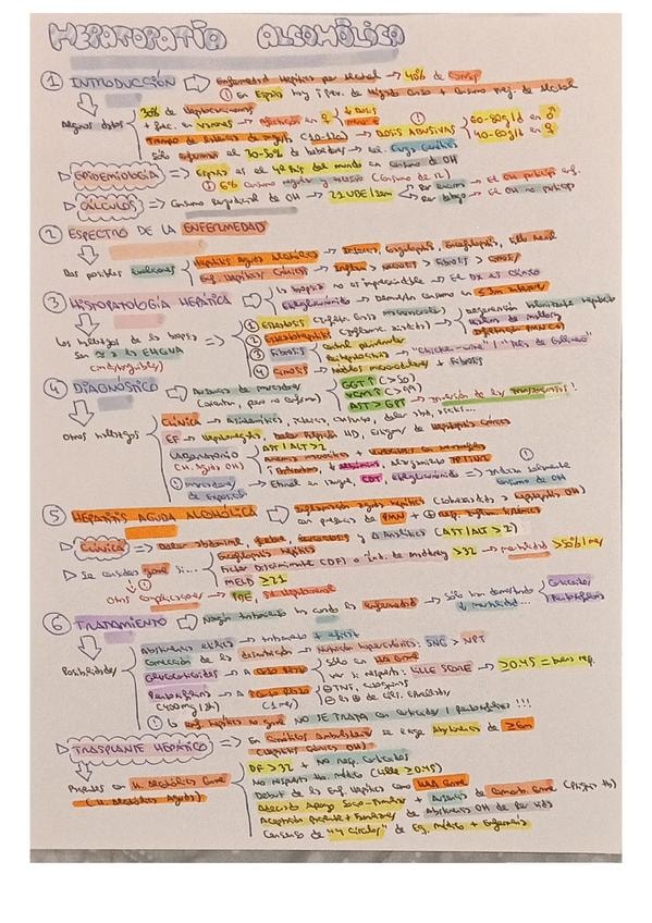 Resumen esquemático de los puntos más importantes del tema de hepatopatía alcohólica