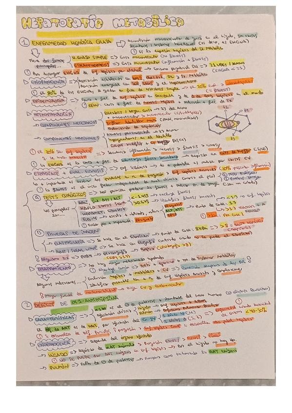 Resumen esquemático de los puntos más importantes del tema de hepatopatía metabólica
