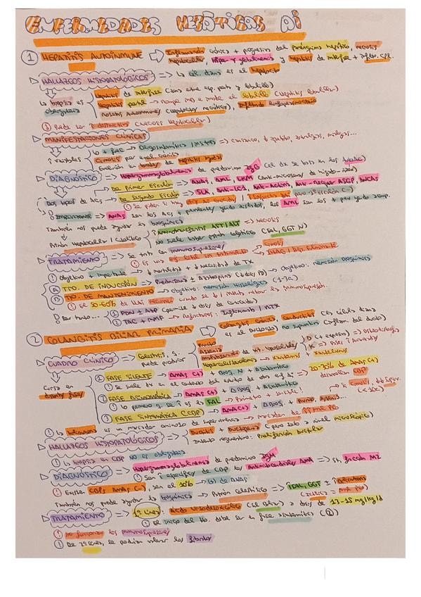Resumen esquemático de los puntos más importantes del tema de enfermedades hepáticas autoinmunes