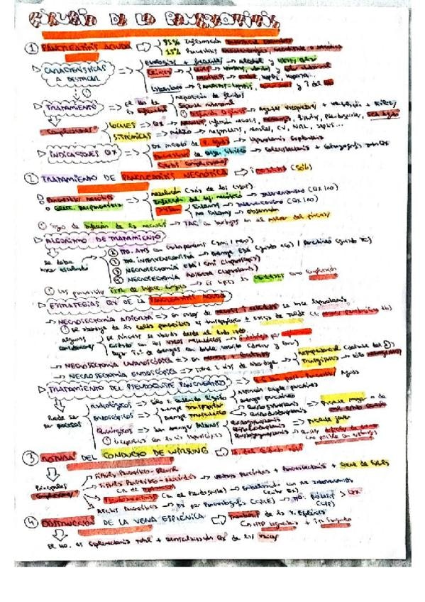 Resumen esquemático de los puntos más importantes del tema de cirugía de la pancreatitis