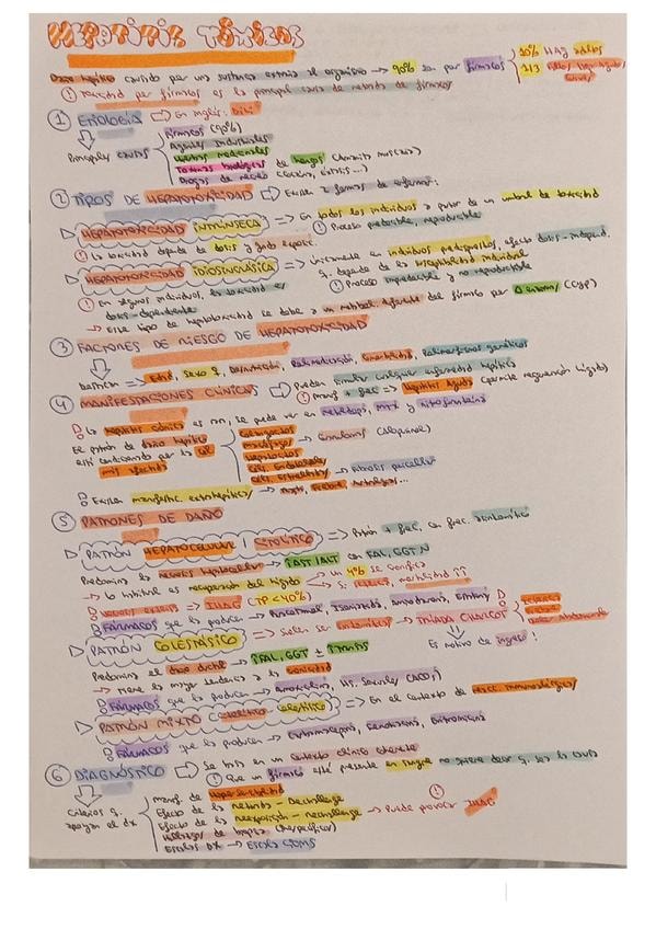 Resumen esquemático de los puntos más importantes del tema de hepatitis tóxicas