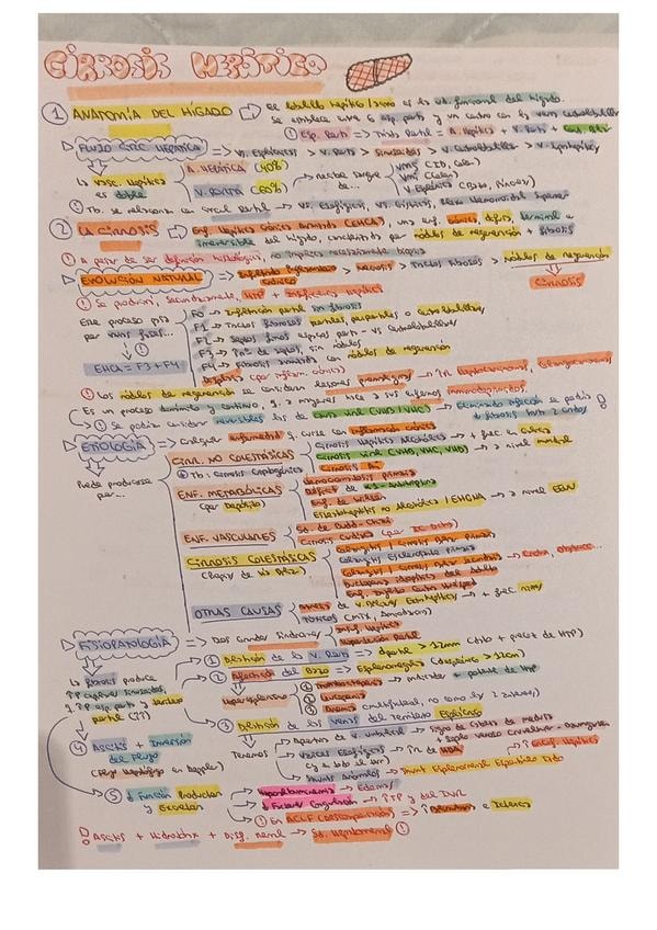 Resumen esquemático de los puntos más importantes del tema de cirrosis hepática