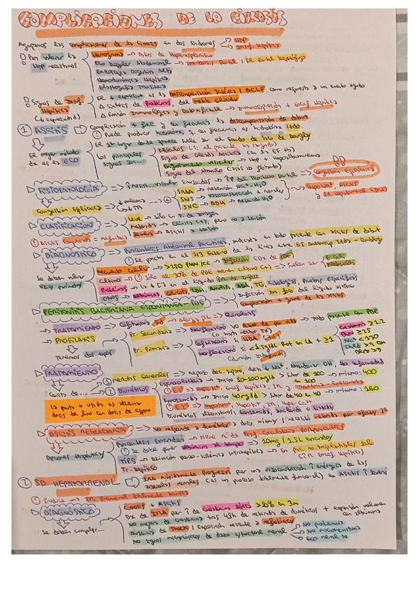 Resumen esquemático de los puntos más importantes del tema de complicaciones de la cirrosis