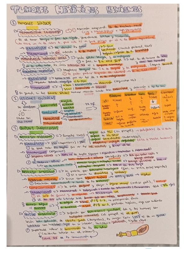 Resumen esquemático de los puntos más importantes del tema de tumores hepáticos benignos