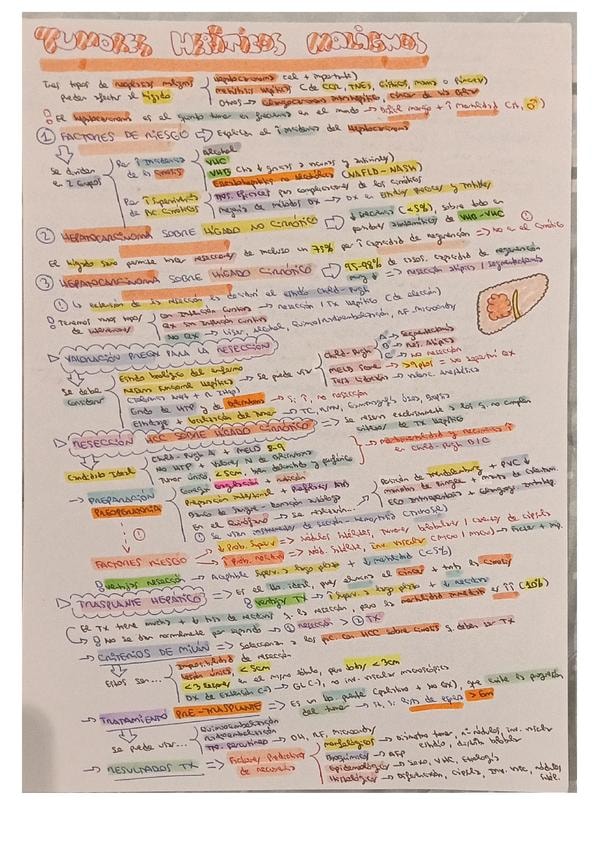 Resumen esquemático de los puntos más importantes del tema de tumores hepáticos malignos
