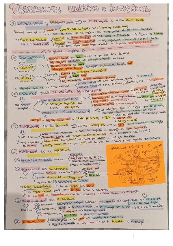 Resumen esquemático de los puntos más importantes del tema de trasplante hepático e intestinal