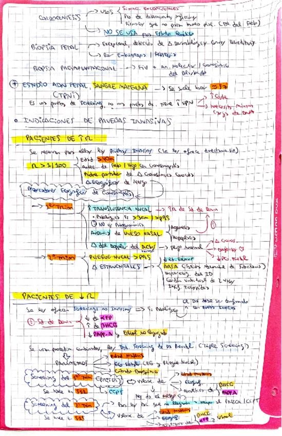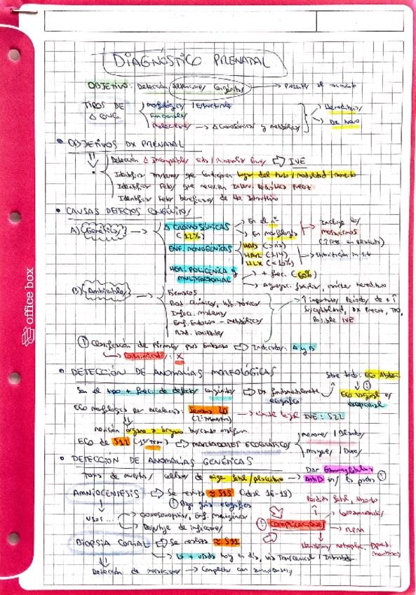 Resumen esquemático de los puntos más importantes del tema de diagnóstico prenatal