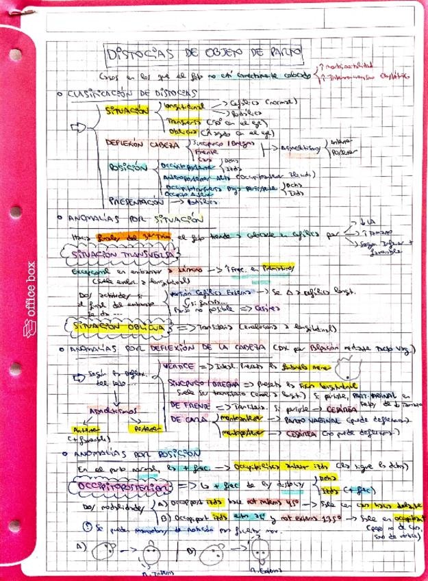 Resumen esquemático de los puntos más importantes del tema de distocias de objeto de parto