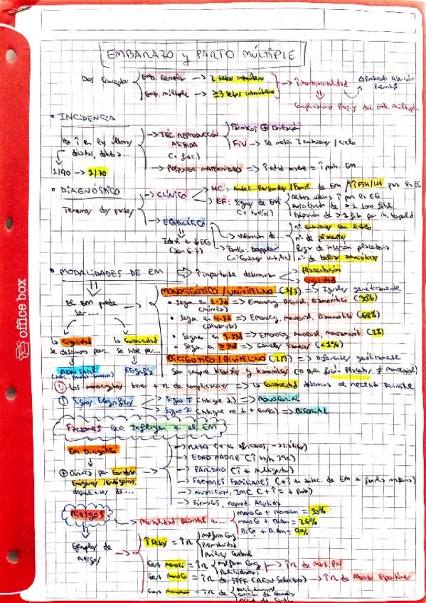 Resumen esquemático de los puntos más importantes del tema de embarazo y parto múltiple