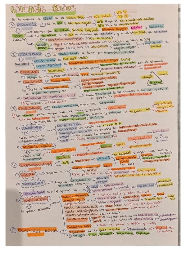 Resumen esquemático de los puntos más importantes del tema de litiasis biliar