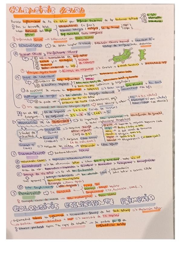 Resumen esquemático de los puntos más importantes del tema de colangitis