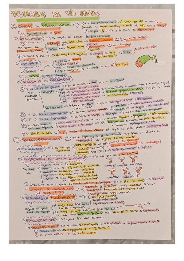 Resumen esquemático de los puntos más importantes del tema de tumores de la vía biliar