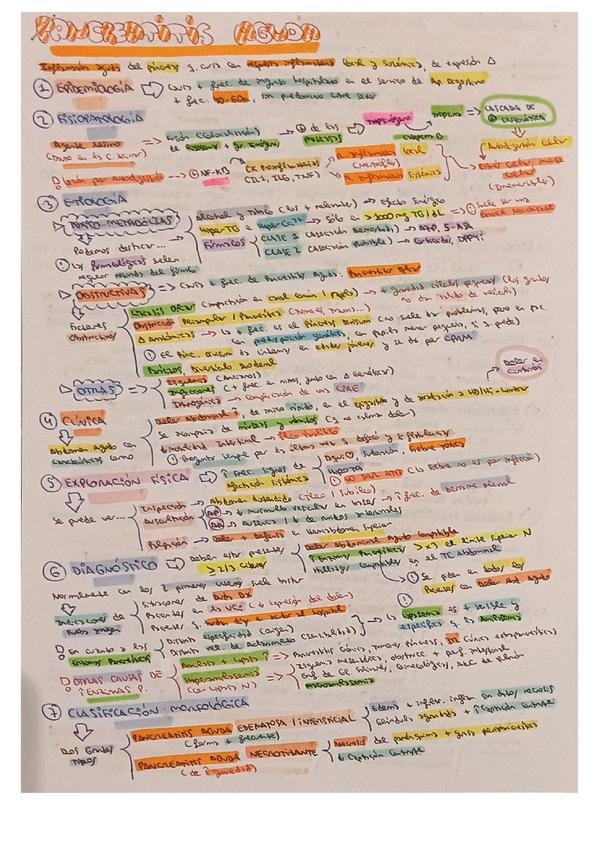 Resumen esquemático de los puntos más importantes del tema de pancreatitis aguda