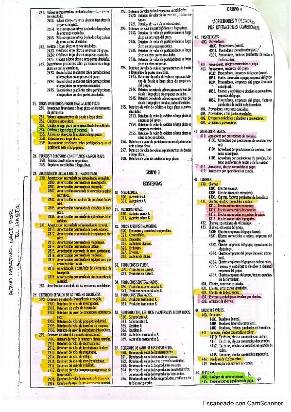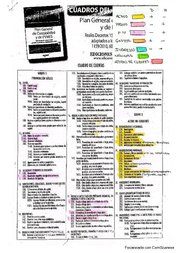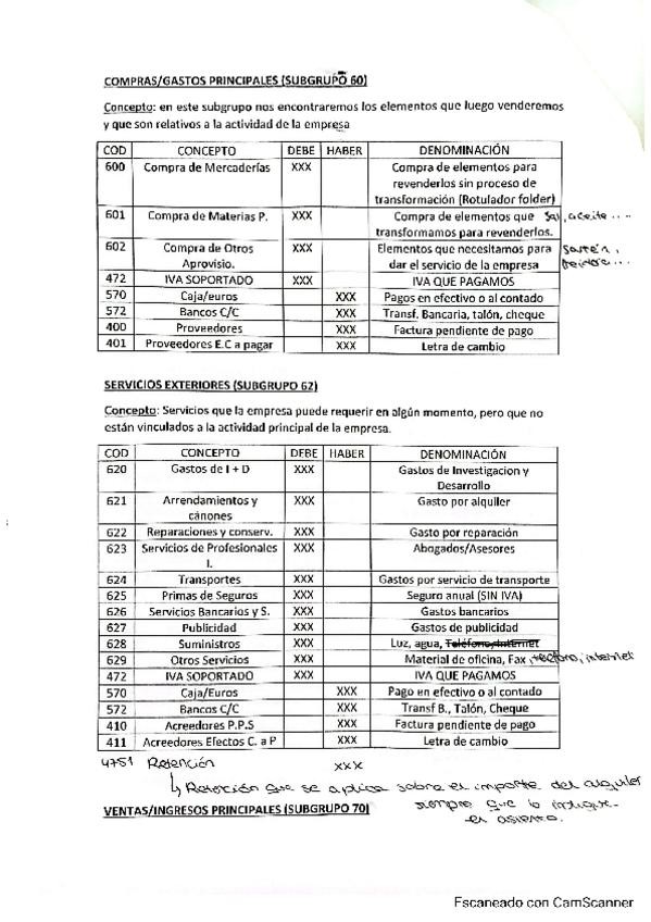 Cuadro de cuentas con las principales y más importantes.
