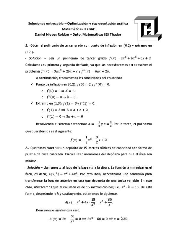 He publicado nuevos ejercicios de 2º Matemáticas II: Soluciones-ejercios-optimizacion.pdf