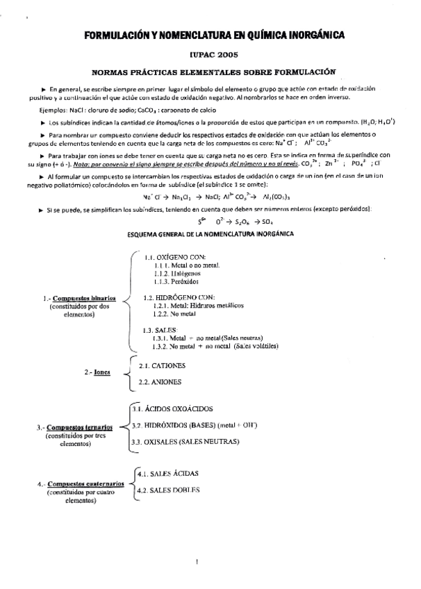 Los mejores apuntes de formulación inorgánica (con ejercicios y tabla de valencias)