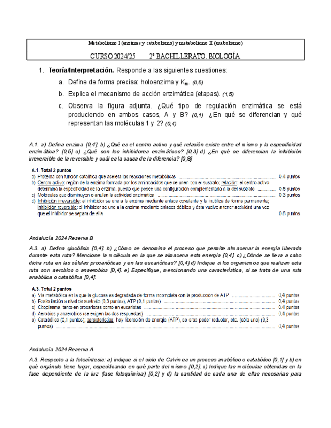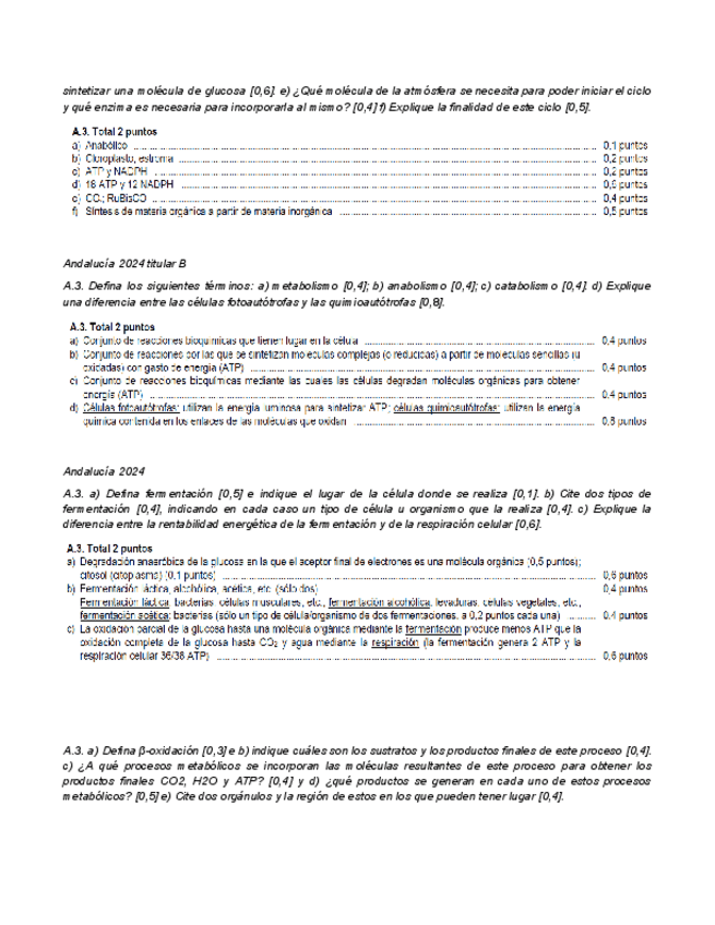 Estas son las posibles preguntas del bloque de metabolismo que van a caer en la PAU 2025 Andalucía