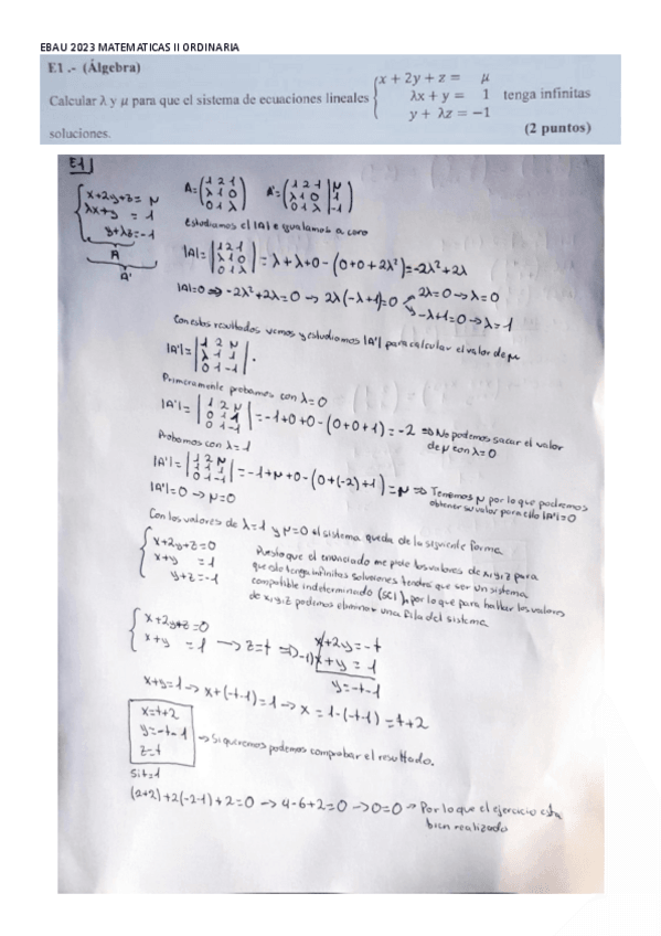 EXAMENES EBAU MATEMATICAS II RESUELTOS