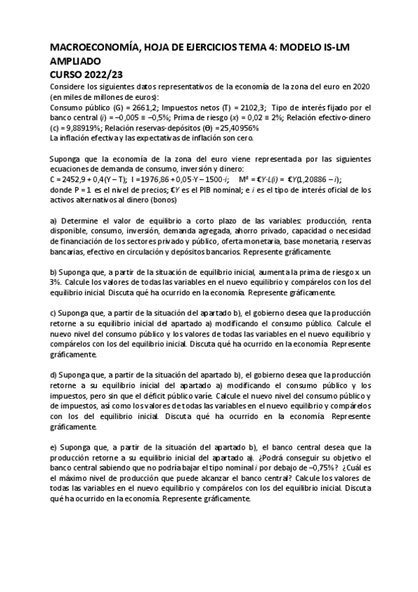 Macroeconomía Tema 4 Ejercicio Largo