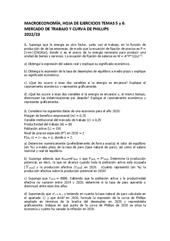 Macroeconomía Tema 5/6 Ejercicio Largo